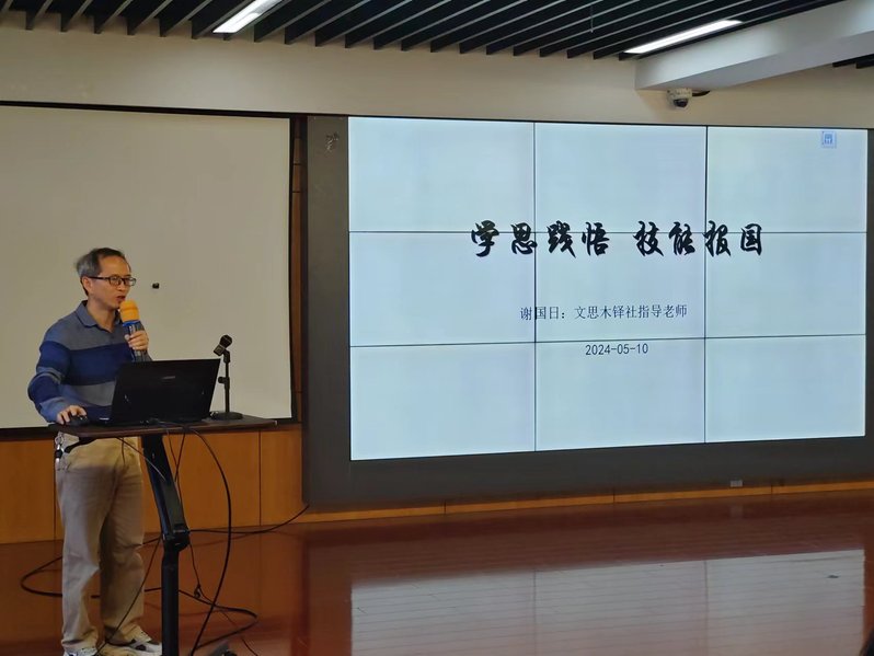 5月10日下午,马克思主义学院理论学习社团文思木铎社在I401教室主办了一场学习贯彻习近平总书记考察上海时的重要讲话精神的宣讲活动。活动主题为“奋斗与成长,新时代高职大学生责任与实践”,马克思主义学院副院长茌良计、文思木铎社指导老师谢国日,以及文思木铎社两名宣讲骨干社长杨廷东、社员吴艳慧同台分享,来自学校各专业的学生代表近100人聆听了讲座。