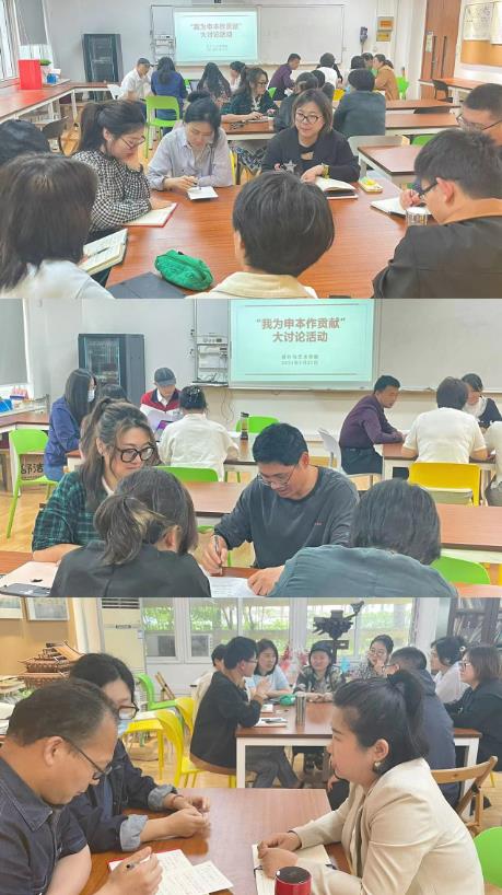 为激发教职工申本作贡献内生动力。在学校部署的《关于开展“我为申本作贡献”大讨论的实施方案》指导下,设计与艺术学院制定了学院讨论方案,于5月27日在E106组织开展“我为申本作贡献”大讨论活动。本次活动以分组讨论、交流沟通、形成报告的形式开展,设计与艺术学院全体教职工参与了此次讨论活动。活动由党总支书记高晓昧主持。
