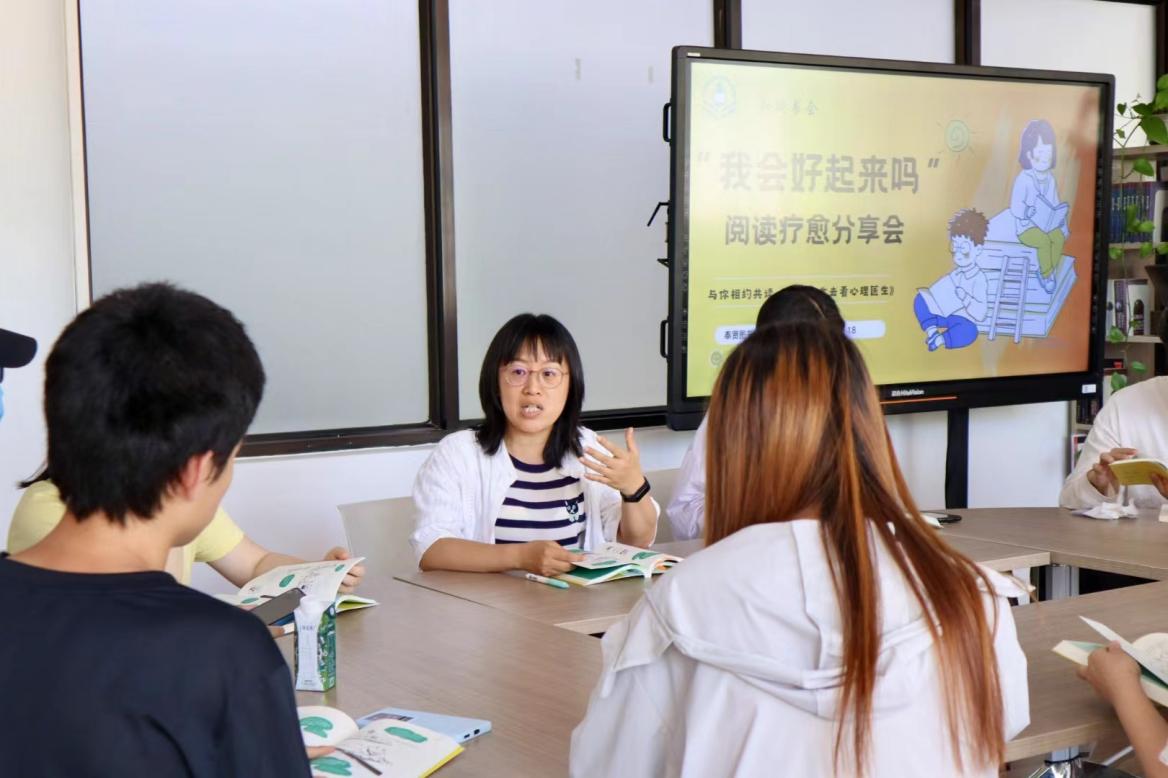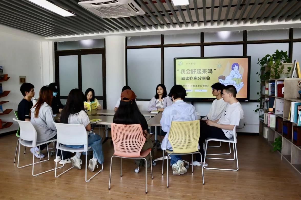 阅读,如和风细雨,悄然滋养心灵。6月18日下午,奉贤校区图书馆开展了一场“我会好起来吗”阅读疗愈活动。此次活动由图书馆“和润书会”与校心理健康教育与发展中心联合举办。学校心理咨询中心负责人毛箴琪、专职心理咨询师梁秀清和图书馆10余名师生相聚一楼“悦读空间”,于字里行间共同感受阅读的治愈力量。