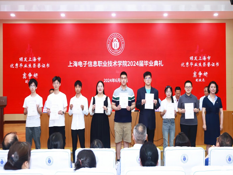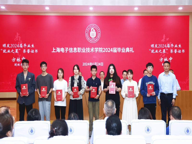 学校副院长窦争妍、副院长徐德明、副院长方林中分别为2024年上海市优秀毕业生、学校优秀毕业生、2024届毕业生“就业之星”代表颁发荣誉证书。