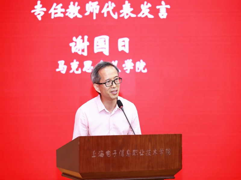 马克思主义学院谢国日作为教师代表发言,分享自己作为一名思政教师的经历与感悟,他深情地说到,毕业典礼不是庆祝“结束”、纪念“完成”,而是全新的开始,曾经辉煌的同学请不要骄傲,曾经迷失的同学请不要气馁,只要努力,时间会给大家在社会这张答卷上一个客观的评分。