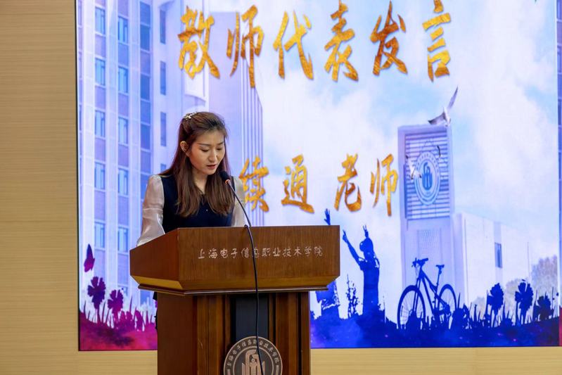 教师代表续通老师勉励即将踏上新征途的毕业学子们继续保持对知识的渴望,释放爱与温暖,将个体独特的智慧、感悟和对生活的热辣滚烫融入时代的洪流,做最美的浪花,成为最好的自己。