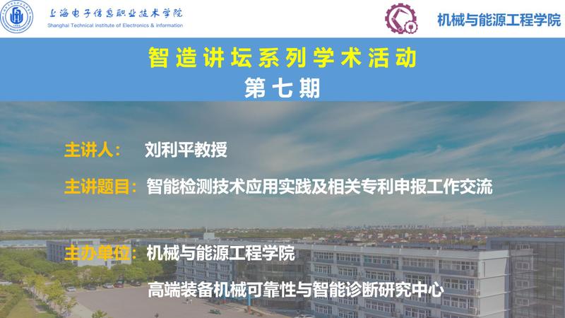 为提升教师学术水平,发扬开放合作、携手创新的科学精神,6月26日,高端装备机械可靠性与智能诊断研究中心(以下简称“研究中心”)第七期“智造讲坛”系列学术活动通过腾讯会议开展。活动邀请了研究中心刘利平教授做了“智能检测技术应用实践及专利申报工作交流”的主旨报告。