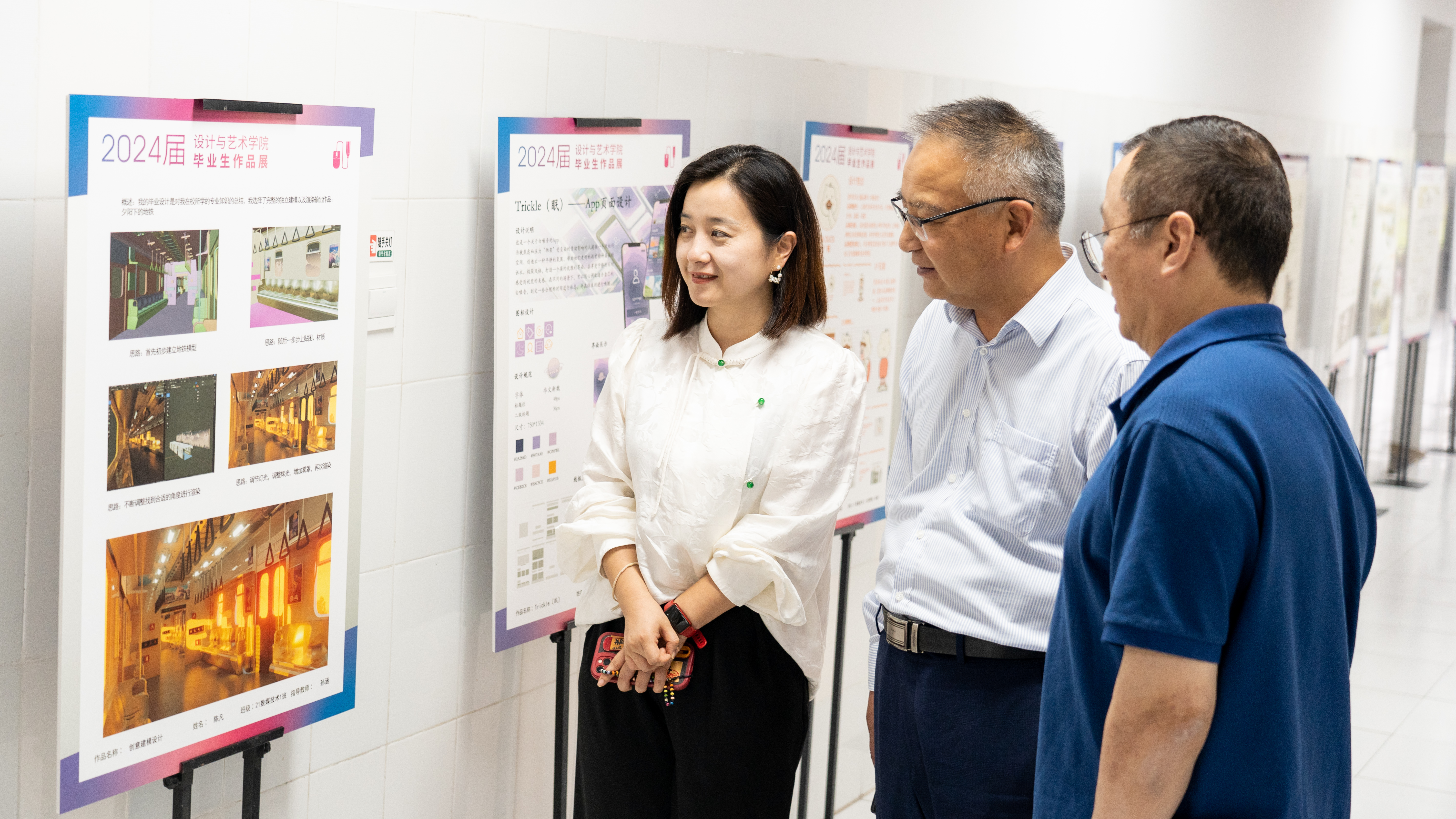 在会场上,优秀毕业设计作品被展示,这些作品题材新颖、充满生机、风格多样,以独特的视角和创新的意识展示了同学们大学三年的学习成果和毕业生们的青春风采,展现了他们在艺术领域的探索和追求,为未来的职业发展打下了坚实的基础。