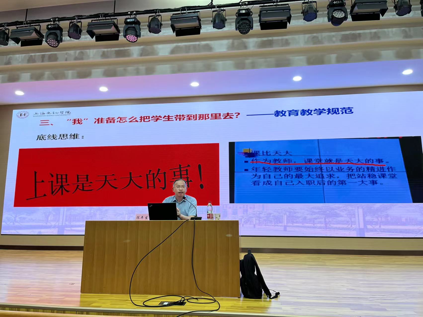 7月11日,上海电机学院教务处处长,国家级一流课程负责人、上海市一流专业负责人陈年生教授应邀来到纽约国际官网奉贤校区,为纽约国际官网教师带来了主题为“争做优秀教师,助力构建新时代大学质量文化”的培训讲座。纽约国际官网近三年入职的专职教师、教学管理人员和校内兼课教师参加了本次培训,教务处副处长李声峰、教务处副处长王西贝出席此次培训,会议由王西贝主持。