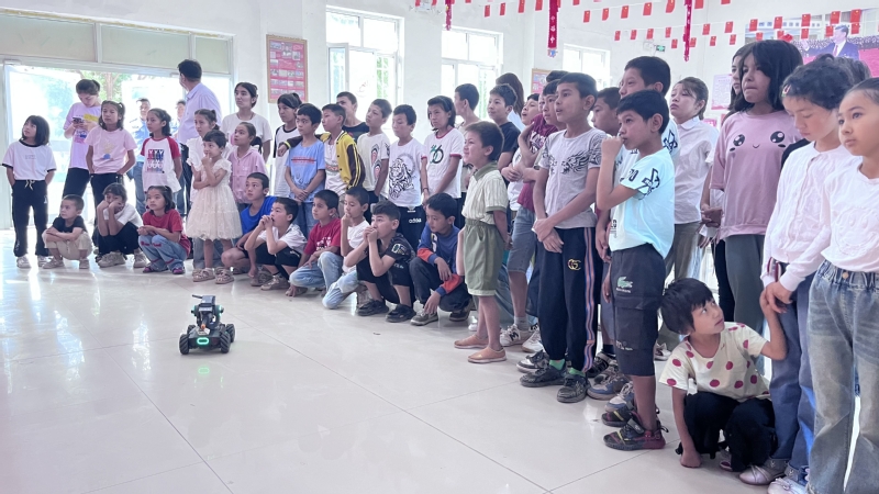 在“扶困”的坚实基础上,“疆”心筑梦团更以“匠心”宣讲开启“扶智”新篇章。蒲晓璇不仅分享了自己及众多优秀学子从勤学苦练到技能竞赛的成长历程,更将视野拓展至服务国家战略性新兴产业的前沿,通过生动讲解小型机械原理、现场演示3D打印、机械臂操作及机甲战车体验,让孩子们近距离领略智能制造的无限魅力。