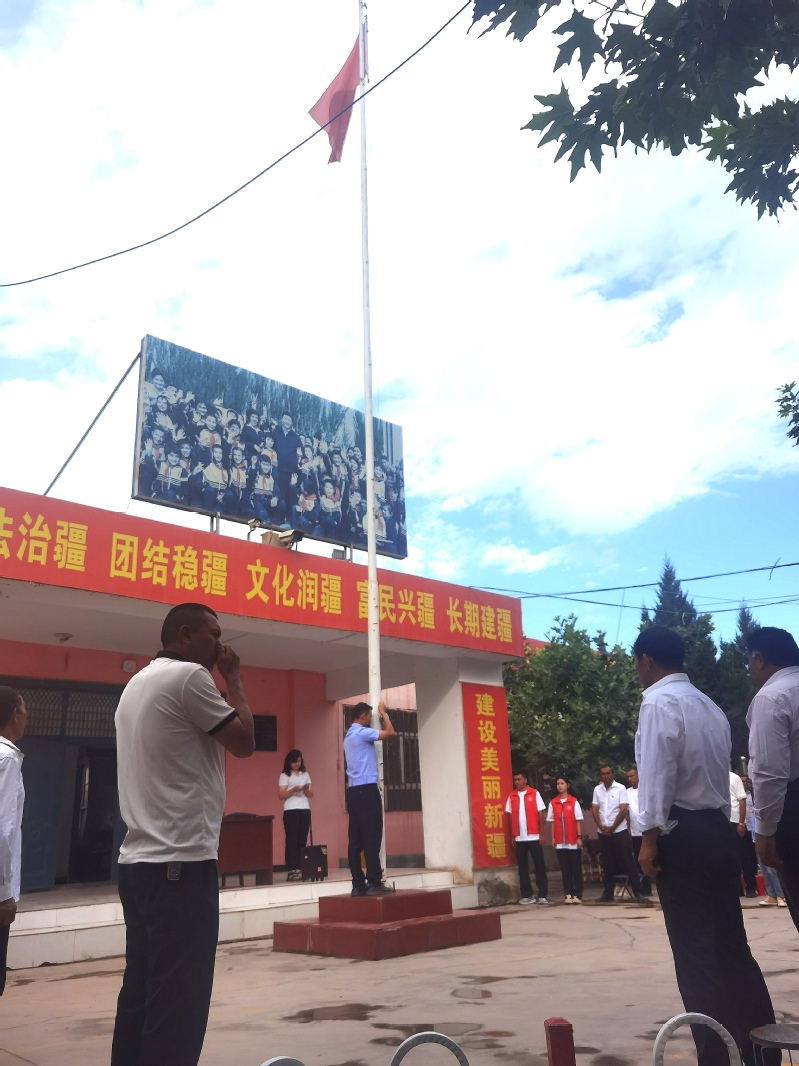 在新疆喀什地区西南部的翠绿绿洲之中,帕西西村宛如一颗璀璨的明珠,依偎在疏附县石园镇的怀抱。清晨,晨光初破,一场意义非凡的升旗仪式在村中庄严举行,“疆”心筑梦团成员们满怀敬意参与其中。随后,在帕西西村村委会的大力支持下,“疆”心筑梦团发起了一场温馨而有力的资助宣传活动。