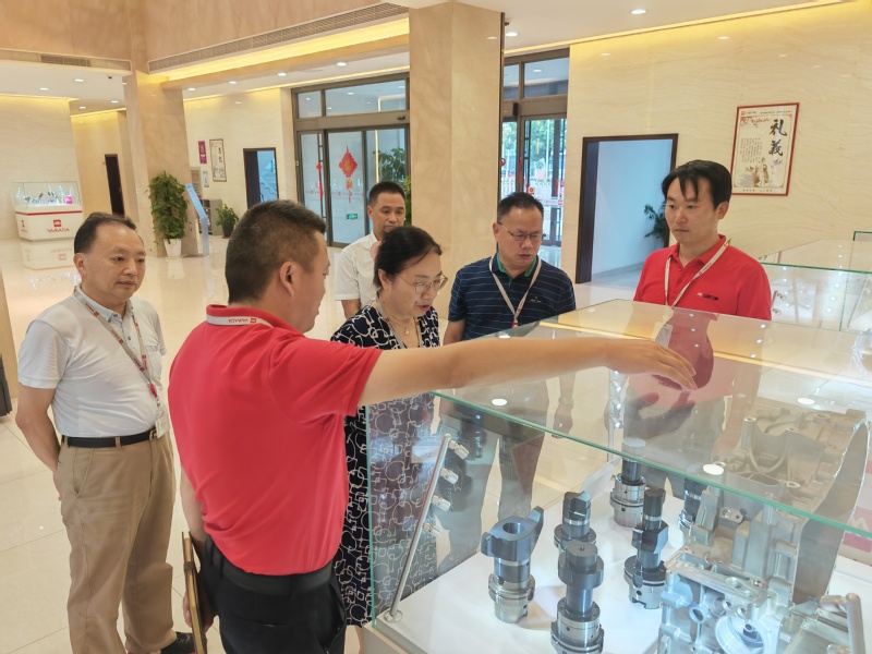 会后王向红一行参观并深入了解企业数字化运营管理系统模式、刀片类产品数字激光加工等研发和制造情况。