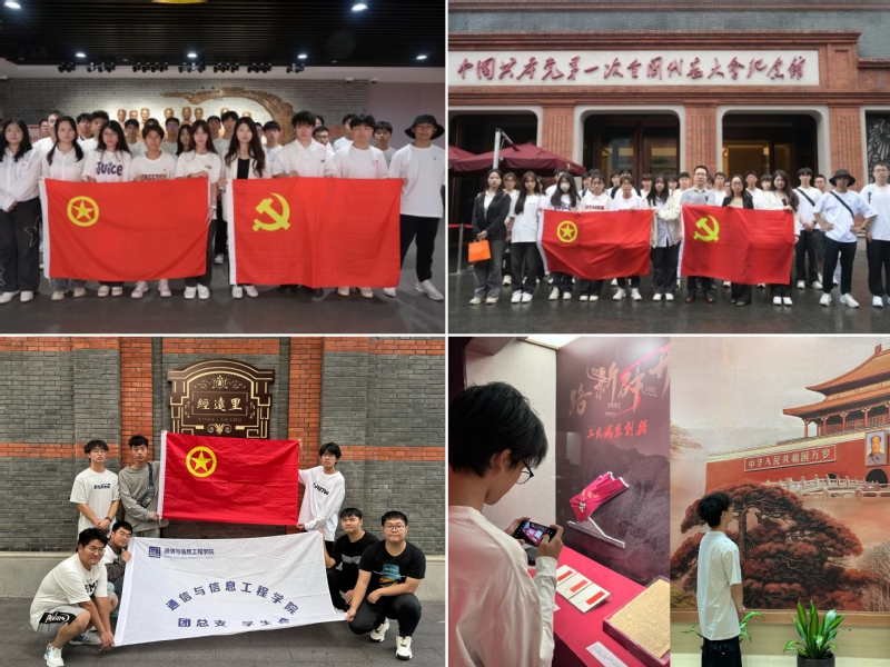 通信与信息工程学院组织开展“青春献礼 共庆华诞”主题参观活动,带领10余名同学前往中国共产党第一次全国代表大会会址参观学习,通过本次红色遗址的参观研学活动,向同学们展示了中国共产党的光辉历程,深入了解红色文化,培养了浓厚的爱国情感,进行了深刻的爱国主义教育。
