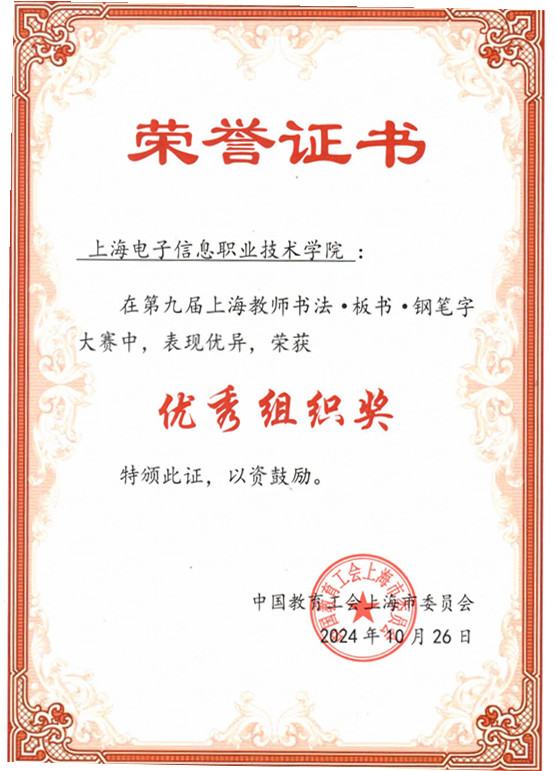 10月16日,第九届上海教师书法、板书、钢笔字大赛由上海市教育工会主办,上海教工书画协会及上海第二工业大学工会共同承办。本次大赛中,纽约国际官网派出五位教师参与竞争。经过一番激烈的比拼,设计与艺术学院的彭湘老师荣获高校(含直属单位)书法比赛三等奖,外语学院的孟庆尉老师荣获高校(含直属单位)钢笔字比赛三等奖,学校荣获“优秀组织奖”荣誉称号。