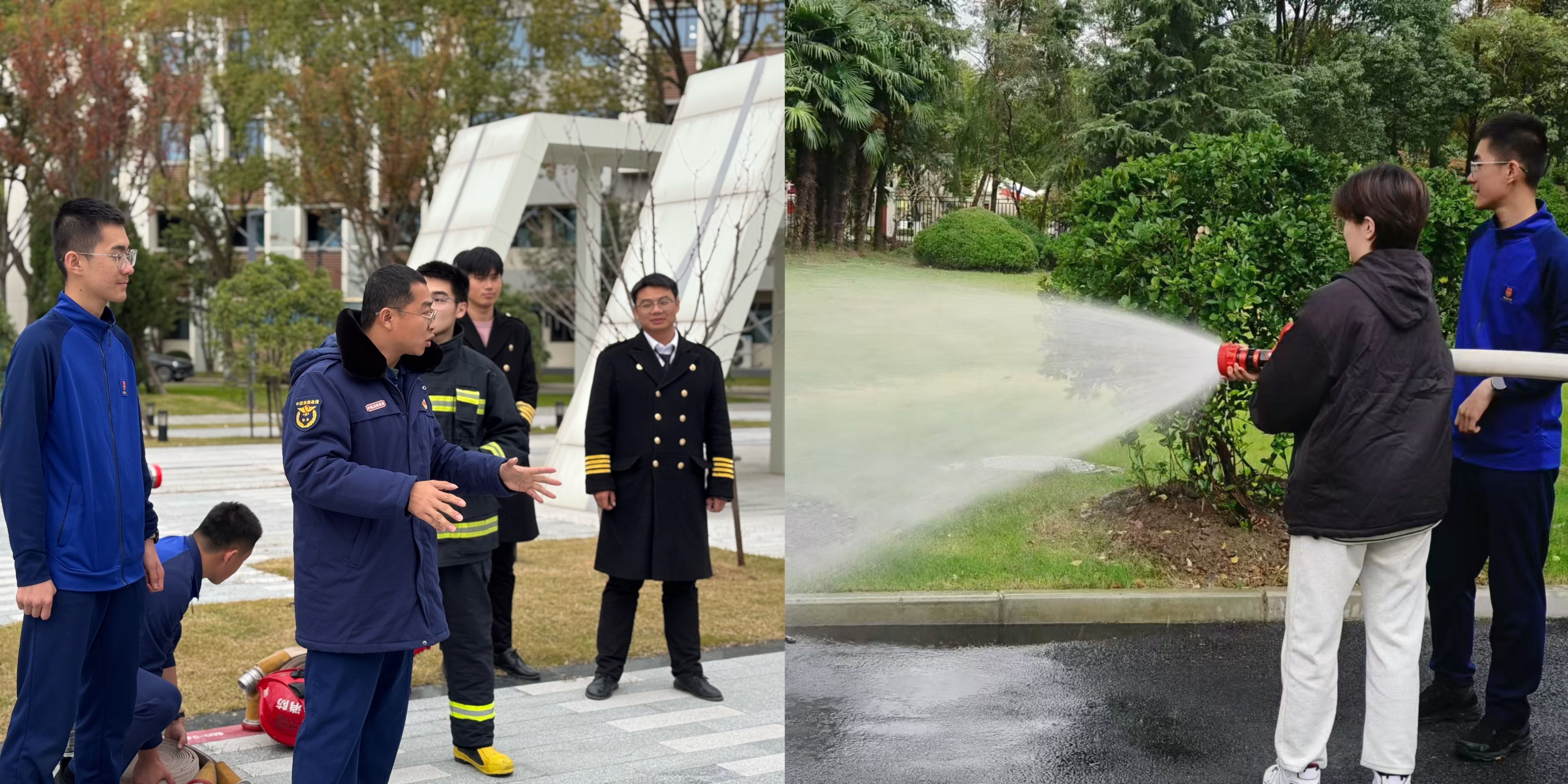 技能体验环节,在专业的指导下,同学们手持灭火器和高压水枪,按照正确的操作步骤,成功扑灭模拟火源,掌握了灭火的基本技能。