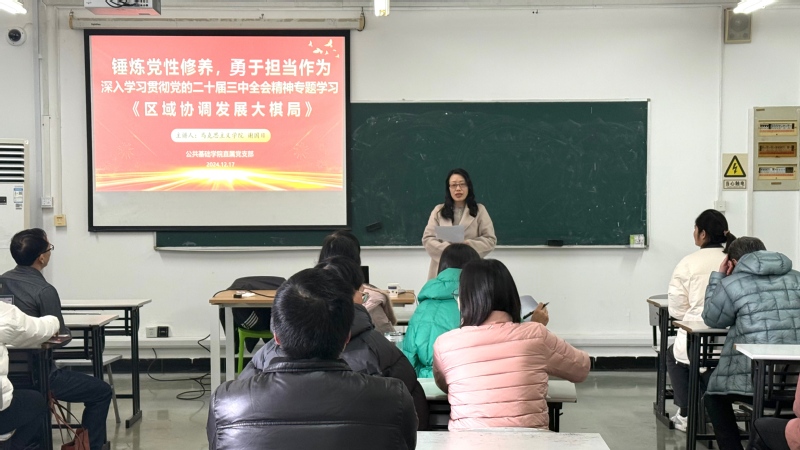 为深入学习习近平新时代中国特色社会主义思想,全面提升党员队伍素质,增强基层党组织的政治功能和组织功能,推进学院各项事业高质量发展,学院直属党支部于近日在F208开展“锤炼党性修养,勇于担当作为——深入学习贯彻党的二十届三中全会精神”专题学习。此次专题学习特邀纽约国际官网马克思主义学院谢国日老师作“区域协调发展大棋局”专题讲座。