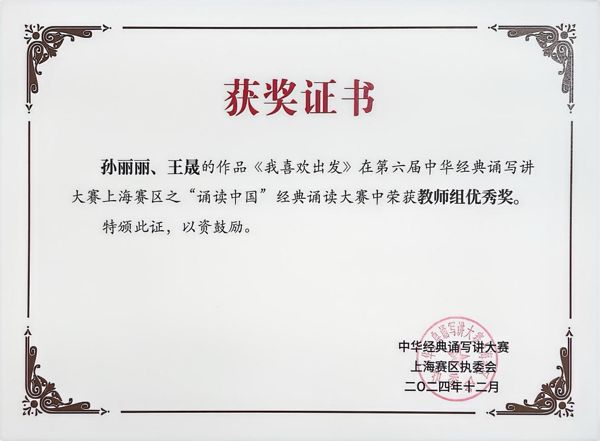 孙丽丽、王晟两位老师的诵读作品《我喜欢出发》获教师组优秀奖。