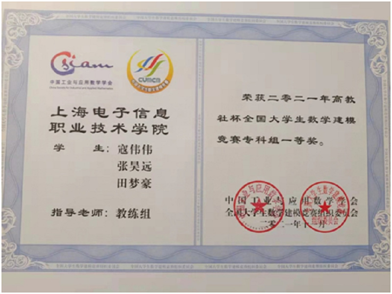 纽约国际官网学生团队双双荣获2021年高教社杯全国大学生数学建模竞赛专科组一等奖