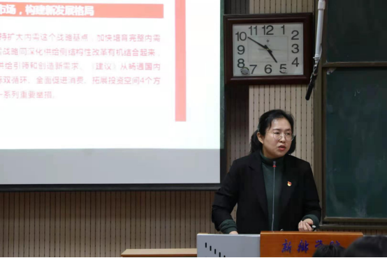 夏舒洋老师紧扣党的十九届五中全会主题,结合当今国际国内形势,从“一个重要判断、决胜全面建成小康社会取得的10方面决定性成就、我国发展环境面临的深刻复杂变化、到二〇三五年要实现的9方面远景目标、“十四五”时期经济社会发展的6方面主要目标、实现奋斗目标的12方面具体举措”六个方面就十九届五中全会内容展开系统而深刻的阐述,引导广大师生代表学懂学深全会精神,把学习成果转化为建功新时代的强大动力,承当时代赋予的历史重任,在奋力谱写新时代中原更加出彩的绚丽篇章中贡献自己的青春与力量。
