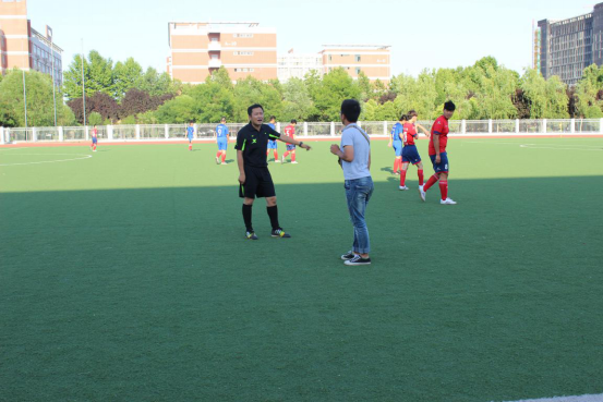 2016年5月24日星期二下午,beat365足球联赛在骄阳似火的天气下有序的进行着,足球运动员们在炎热的天气下奋力拼搏,在这激烈的比赛中,有几道与众不同的身影在比赛之中矗立着,那就是足球场中的“黑衣人”——裁判员,而这次就是我们联赛的裁判长刘佳老师为主裁。