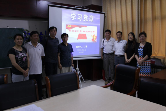 本次活动由党总支书记江灏主持,王海燕副书记、张利副主任、孟田副主任及教工、学生党支部成员参加了此次活动,按照学校的统一部署,体育系专门邀请了学报编辑部党总支张德志老师和张继梅老师,国教党总支郭兵老师等一行人来到体育系参加此次活动。江灏书记首先代表体育系党总支对学报编辑部和国教党总支到来的领导和老师表示热烈的欢迎,然后再次强调了本次“两学一做”学习教育的目的和重要意义,进一步强化全员学习教育,切实加强党的政治理论知识、理想信念教育、廉政纪律等方面的学习,通过领导领学、全员自学等方式,重点将“两学一做”融入党员教育管理新常态,努力打造一支理论素养高、业务能力强、精神面貌新的体育教师队伍,接着声情并茂的展开了以“从党章出发,向党章看齐”为主题的学习党章领学演讲。演讲中,从党章的意义作为切入,详细讲解了十八大党章的相关内容,带领大家重温党员标准、具体条件、权利与义务,党的性质、指导思想和党的纲领。最后,继体育系党总支“走入兰考,学习焦裕禄,重温入党誓词” 活动后,江书记再次带领全体党员在当旗下,紧握右拳,坚定的宣誓。
