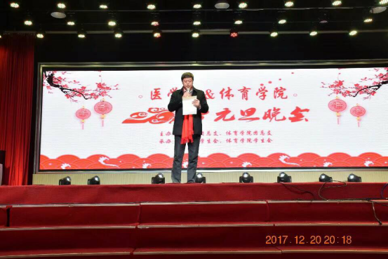 beat365英国官方网站与医学院于12月20日晚上7:00在西区音乐厅联合举办“体医结合,激情新院”为主题的元旦晚会。出席此次元旦晚会的领导有beat365英国官方网站党总支书记江灏老师、党总支副书记王海燕老师、副院长孟田老师、副院长张利老师、团总支书记孟杰老师,医学院党总支书记雎鑫老师、院长杨保胜老师、团总支书记李少觐老师。beat365英国官方网站和医学院教研室主任与全体师生参加了本次演出。