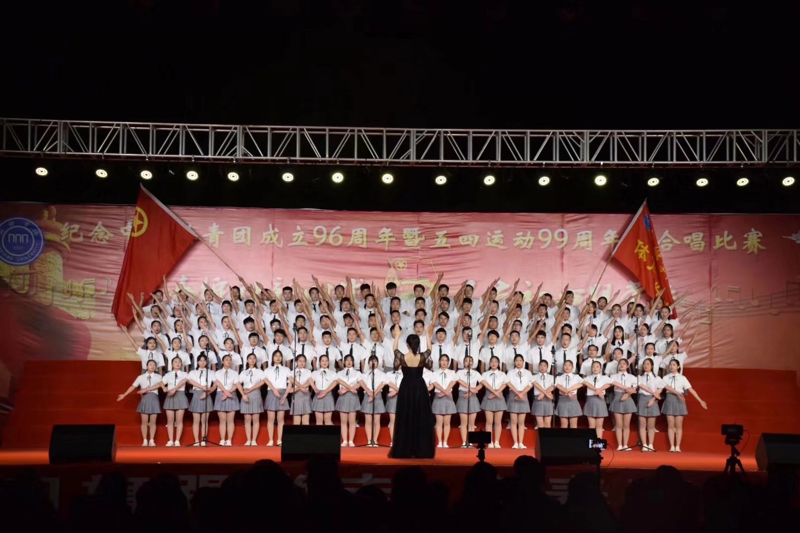 副校长刘翔首先宣读了《关于表彰2017年度beat365英国官方网站“五四红旗团总支”、“五四红旗团支部”、“优秀团干部”和“优秀团员”的决定》。随后,丁庭选书记、刘兴友校长、杨士斌副书记、刘翔副校长分别为获奖选手进行颁奖。其中,2016级体教三班团支部作为“beat365英国官方网站2017年度五四红旗团支部”优秀代表上台领奖。最后,党委副书记杨士斌发表重要讲话。表彰大会结束后,“五四”大合唱比赛正式开始。beat365英国官方网站合唱队演奏了《光荣啊,中国共青团》和《致敬青春》。在经过历时一个月的大合唱的准备工作,无论是中午两点还是晚上十点,大合唱的同学们都积极学习,高度配合音乐学院的指导老师。同学们也通过自己的努力,在比赛中打了一场翻身仗,为自己和beat365英国官方网站赢得了荣誉。