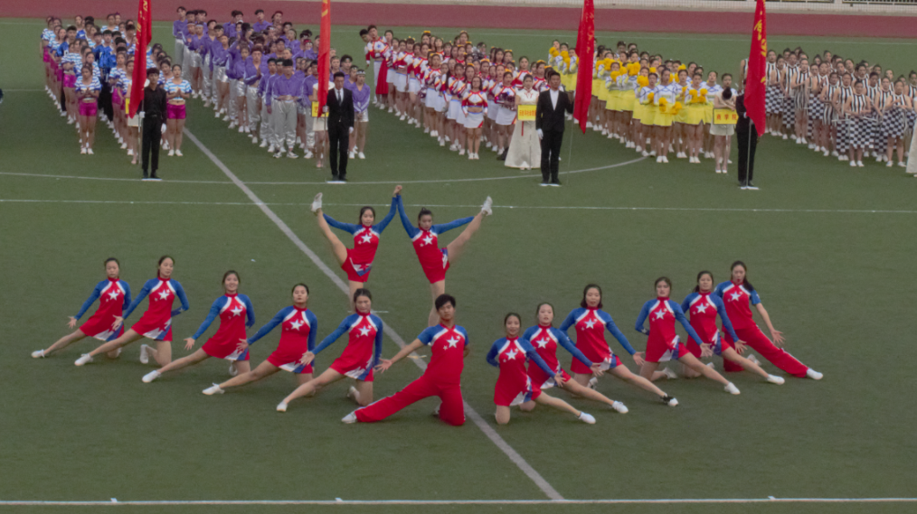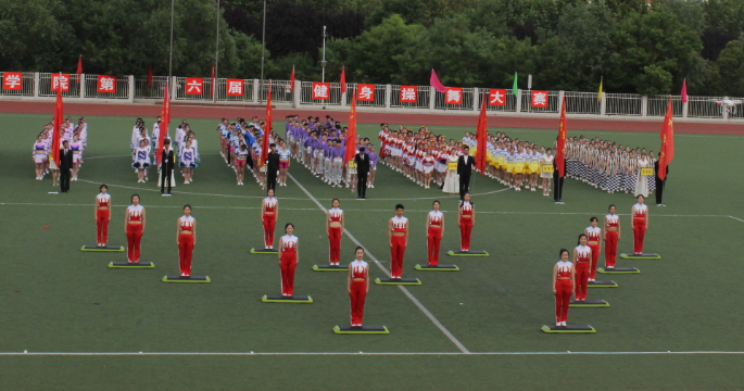 5月29日下午,由校团委主办,beat365英国官方网站承办的第六届健身操舞大赛在西区体育场隆重举行。校党委副书记杨士斌老师,副校长刘翔老师,党委宣传部部长侯玉印老师,学工部部长、学生处处长欧阳豫樊老师,团委书记苏辉老师,各学院党总支书记及团总支书记应邀出席了此次比赛。beat365英国官方网站陈利英老师,杨卫华老师,汪美琪老师,李冰老师,荆彩虹老师,武燕老师和焦苗苗老师担任此次比赛的评委。本次比赛共有来自16个学院的代表队参加比赛,beat365英国官方网站做专业展示。17级体教专业学生作为工作人员为此次大赛服务。