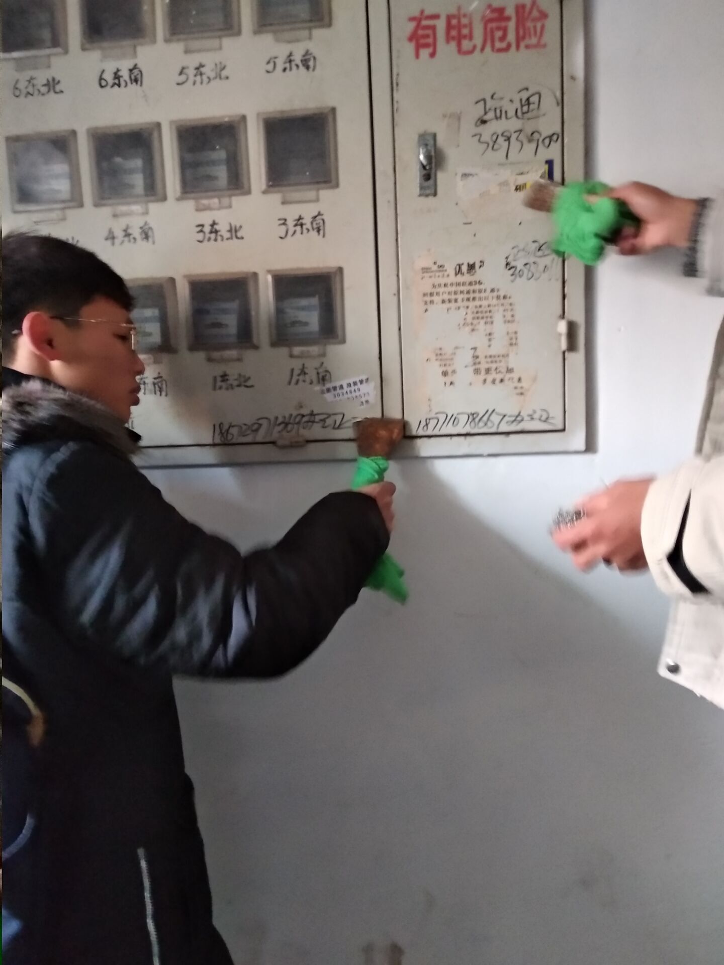 前一天晚上,beat365英国官方网站党总支副书记王海燕老师在学生工作例会上就卫生工作做了具体部署,由各辅导员老师牵头,学生会主席团为责任人,带领全体班干部、学生党员、入党积极分子对F22号楼、西区专家楼周边进行卫生清扫。11日早上8点半,辅导员冯毛弟老师便带领部分同学先行开始了打扫工作。由于正值秋冬季节,落叶满地,再加上楼道内都贴满了小广告,同学们一方面用三轮车一车一车的将落叶拉到垃圾站,一方面提着水,拿着小铲子,一点一点,一张一张的将布满楼道内的小广告铲去。零下的温度,冻得通红的双颊,眼看着凌乱的卫生区经过手心传递出的温度一点点变得整洁、卫生。