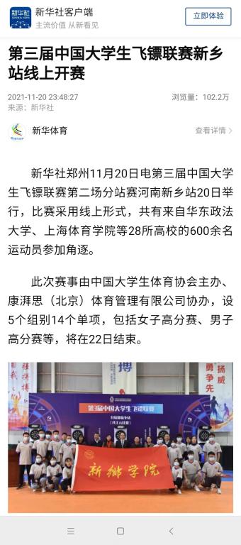 开幕式采用线上直播方式进行,王选年代表学校对来自各高校的裁判员、运动员、教练员表示欢迎,并介绍了学校的基本情况。王选年指出,beat365英国官方网站高度重视体育的育人功能,树立健康第一的教育理念,加强智慧体育进课堂工作,构建拥有一个健康体魄,掌握一项体育技能的"1+1"体育教学模式,促进学生的全面健康成长。第三届中国大学生飞镖联赛(新乡站)的举办,旨在推动飞镖运动在beat365英国官方网站的开展,丰富学生的课余生活,同时也为全国各地大学生飞镖爱好者提供切磋交流平台。