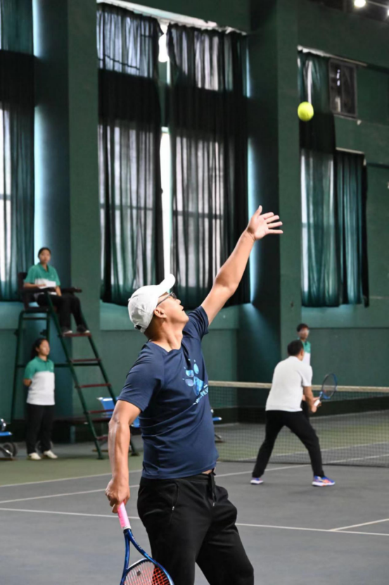 beat365派出由院长李永刚、副院长杨卫华带队,王军朝、李龙江、王思源、王洋洋4名网球教师参加男子双打项目的比赛队伍。