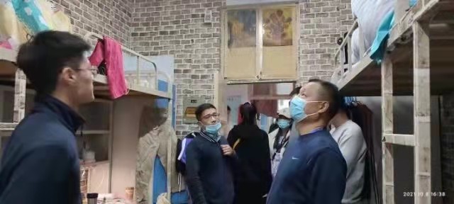 10月8日下午四点beat365英国官方网站党总支书记张启中、党总支副书记张武强带领beat365英国官方网站学工办主任冯毛弟、beat365英国官方网站团委书记聂鸣琨及各年级辅导员展开对beat365英国官方网站学生宿舍的第一次检查。并督促同学们合理摆放物品,整理好寝室卫生,确保用电安全。确保学生住的好住的安全。
