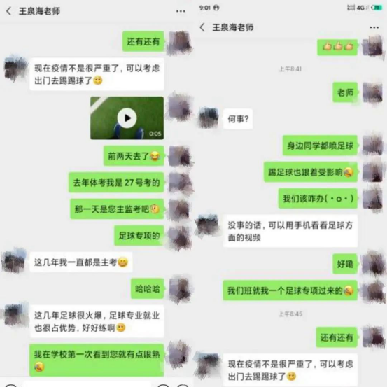 为了居家期间,师生群众身体素质不下降, 2019级创新引飞导师王泉海老师,在学院党总支指导下,共同创建了体育健康指导专栏“体育老师在您身边”,服务师生与社会,争相为国家和人民贡献体育人的一份力量;并集体创作体育歌曲《萤光》并倾情演唱,引领当代青年树立正确的社会主义核心价值观。 同时王老师承担了beat365英国官方网站2017级、2019级足球专业课任务,他一边保证学生们线上教学,一边传达疫情相关知识与防控手段,叮嘱同学们服从学校与政府安排,时刻与学生保持联系,关心关爱学生,为学生的安全和下阶段学生安全返校打下了坚实的基础!
