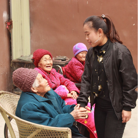 在表演结束之后,同学们开始陪爷爷奶奶聊天,爷爷奶奶对同学们讲述自己以前的经历,在此期间不时地传出笑声、叹息声、感叹声,甚是和谐。时间的一分一秒的向后推移,其乐融融的画面也快速流过。带着爷爷奶奶的祝福和期待,同学们依依不舍地离开。
