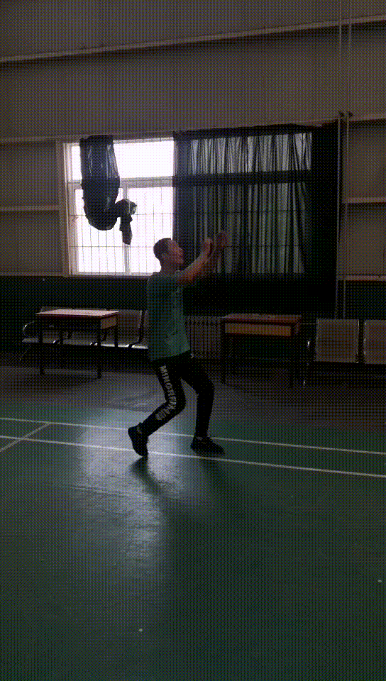 2.准备姿势:稍蹲姿势,面对来球,双手自然抬起,放松,置于脸前。
