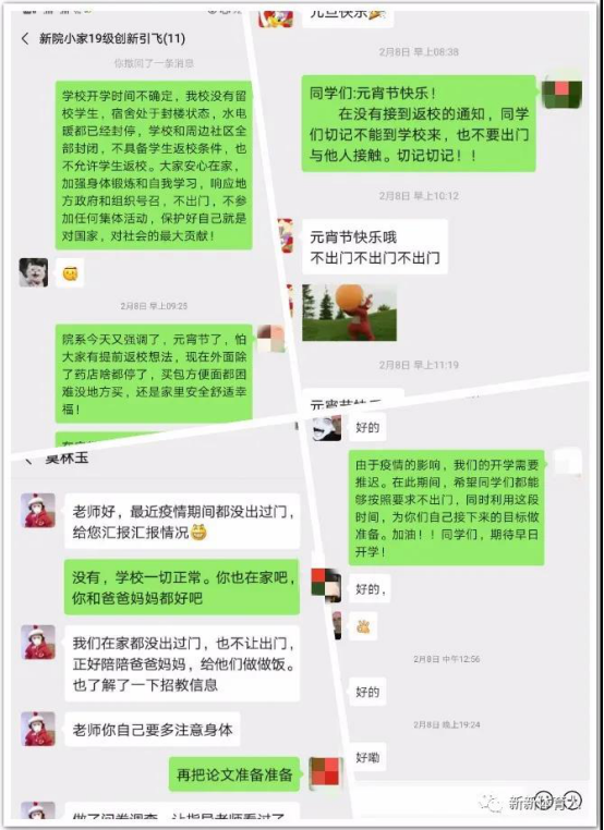 beat365英国官方网站在校4个年级,396名学生,共计创新引飞导师30余名。他们坚守在工作一线,积极探索,开拓了一场别开生面的全员、全方位、全程育人工作模式。在这个特殊的假期中,beat365英国官方网站全体创新引飞导师通过电话、微信、短信等形式全面深入地了解学生的思想政治、学习、健康状况,向学生宣传疫情防控工作,对学生的居家学习、锻炼进行规划、指导,引导学生尽快适应现在生活、学习环境,养成良好的生活、学习习惯,提高学生学习能力、创新能力和实践能力,为早日赢得人民共同的战役而做出自己的一份力。