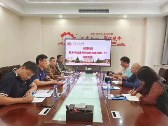 2023512日上午,beat365英国官方网站院长李永刚带队赴河南师范大学beat365英国官方网站学习调研推动学校体育工作高质量发展先进做法及经验。副院长杨卫华、王海燕参加调研。河南师范大学beat365英国官方网站院长岳贤锋、副院长孟国正、刘光同、教学秘书朱春山、党政办公室副主任史晓慧等同志陪同调研。