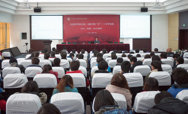 2013年1月14日下午,应电子工程系的邀请,山东大学李惠军教授在奉贤校区C108报告厅成功举办了《走进半导体王国,决胜中国“芯”!》学术讲座。 讲座由微电子专业教研室主任顾晓清老师主持,邀请了通信与信...