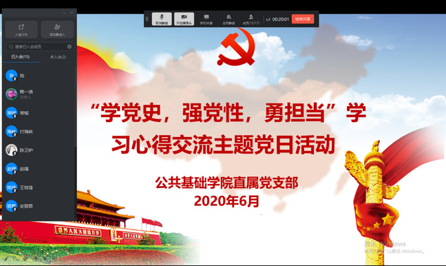 为深入学习贯彻落实习近平新时代中国特色社会主义思想,通过学习党史增强党性,勇于在学校和学院各项事业中承担重点和难点任务,在思想上、行动上起到先锋模范作用,6月17日晚公共基础学院直属党支部组织全体党...