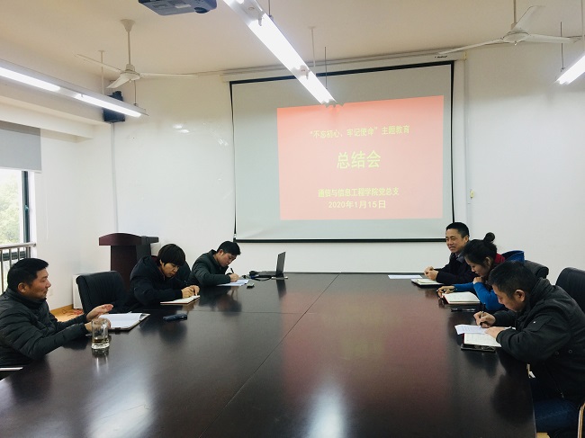 2020年1月15日上午,通信与信息工程学院党总支“不忘初心、牢记使命”主题教育总结会在J313会议室召开。党总支书记陈林河主持会议,全体党总支委员参会。 会...