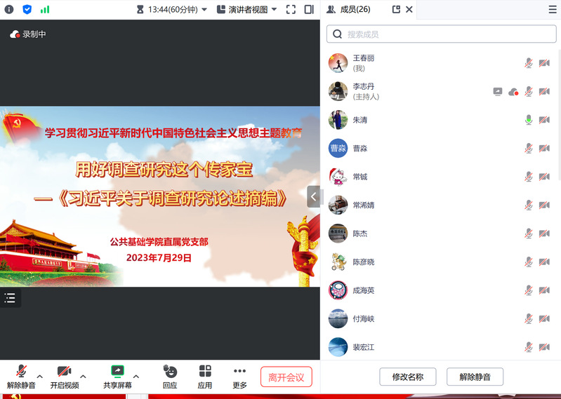 为深入开展学习贯彻习近平新时代中国特色社会主义思想主题教育,根据公共基础学院直属党支部主题教育计划安排,7月29日组织全体党员进行专题学习研讨“用好调查研究这个传家宝——《习近平关于调查研究论述摘编》...