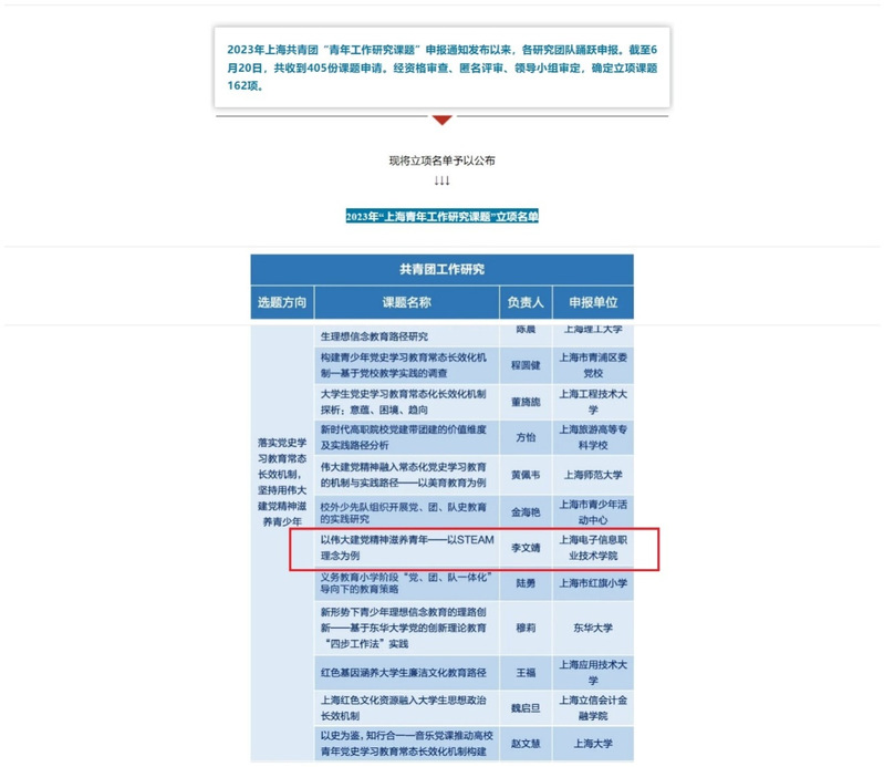 喜报!纽约国际官网马院一项课题获2023年上海青年工作研究课题立项