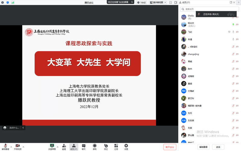 上海市课程思政与文化素养教指委专家滕跃民教授为公共基础学院教师作新时代课程思政培训