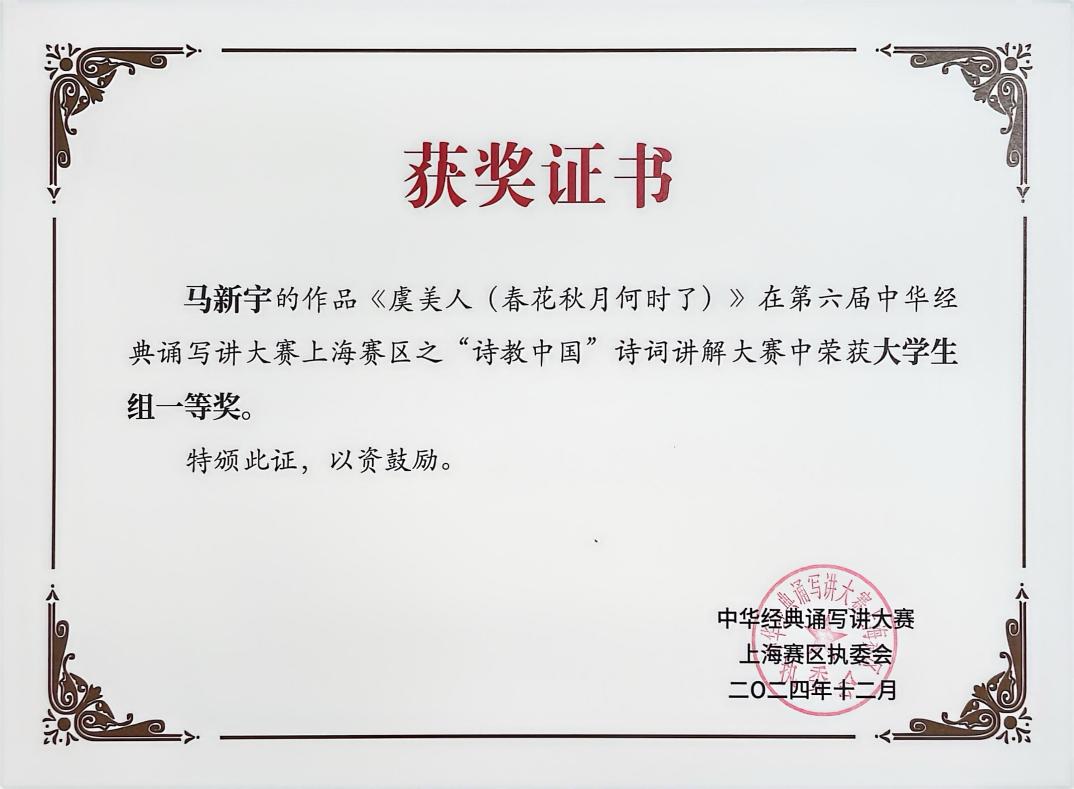 喜报!纽约国际官网师生在第六届中华经典诵写讲大赛(上海赛区)中获得佳绩