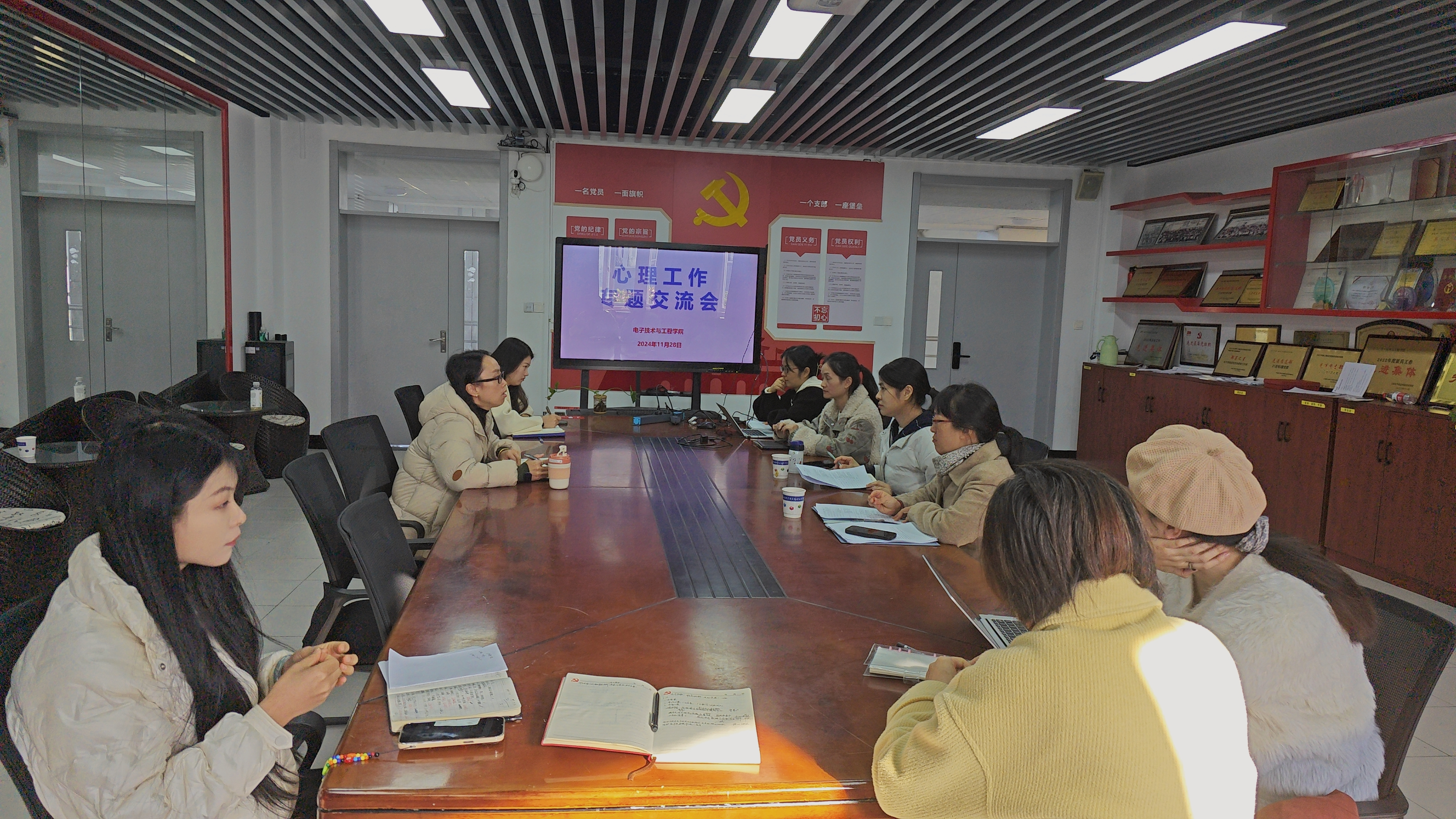 11月28日,电子学院开展心理工作专题交流会。学校心理咨询中心毛箴琪、梁秀清参会。学院党总支副书记、副院长杨烨萍,“芯”动力二级心理工作站负责人张竹,电子学院辅导员参与本次会议。毛箴琪老师就学校内心理问题...