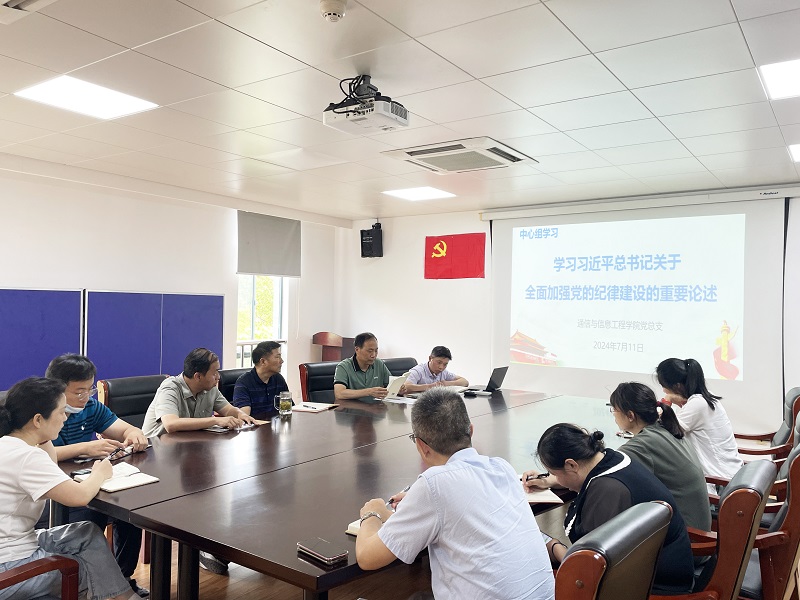 为推动党纪学习教育不断走深走实,7月11日下午,通信学院党总支开展中心组理论学习,深入学习习近平总书记关于全面加强党的纪律建设的重要论述,学院党政班子、党支部书记参加学习,党总支副书记江龙主持会议。江龙...