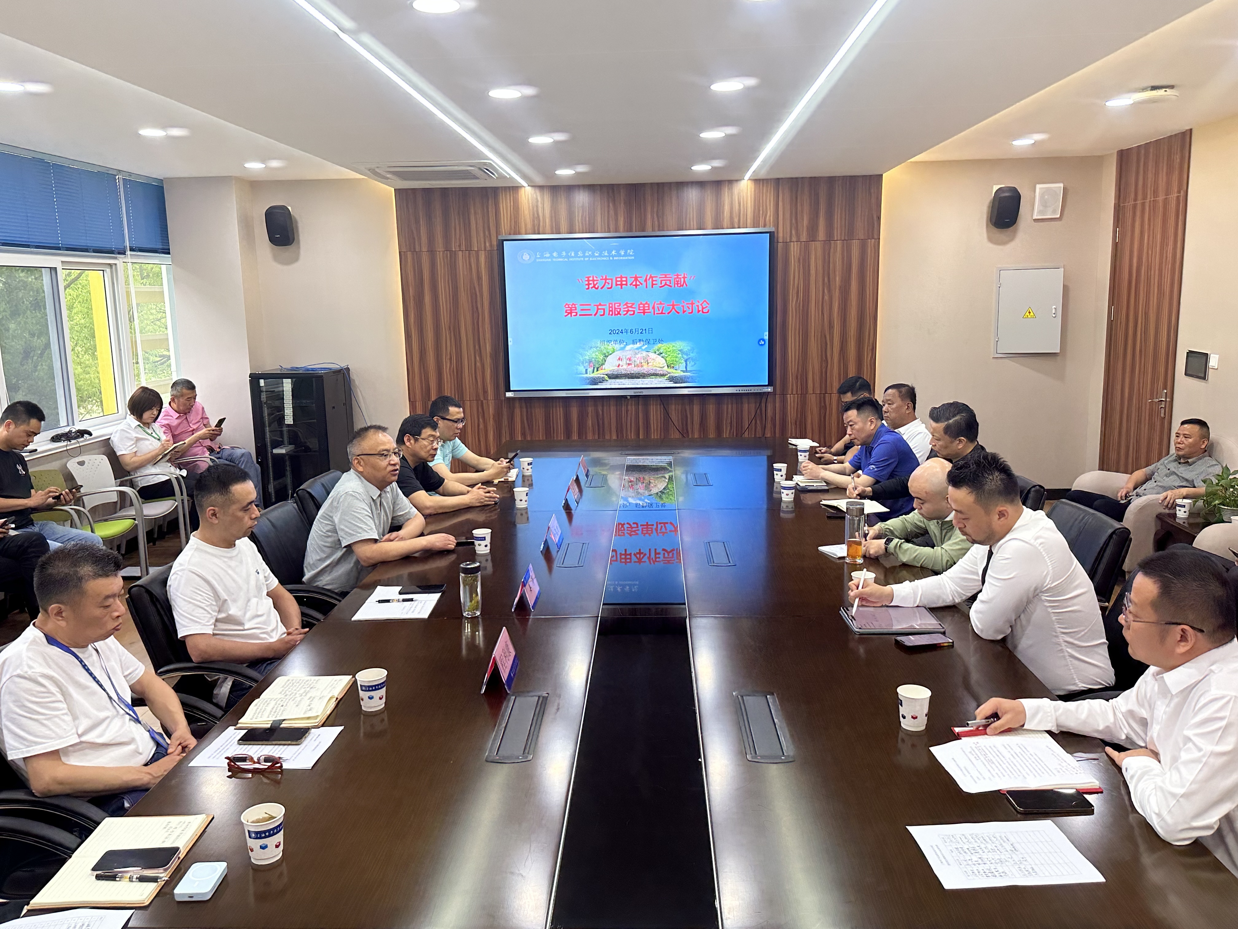 6月21日,后勤保卫处于组织第三方服务公司开展“我为申本做贡献”讨论活动。校党委委员、副院长徐德明出席活动。各校区物业服务公司、汽车租赁服务公司、绿化养护单位、食堂经营单位的管理层和相关管理人员参加讨论...