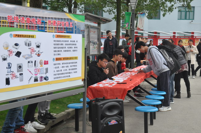 为进一步提高生活园区全体住宿学生的安全意识,保障学生的人身与财产安全,共同构建平安和谐校园,12月5日中午,由生活园区管理办公室主办、学生楼管会承办的“拒绝违章电器,共建平安园区”签名承诺活动在生活...