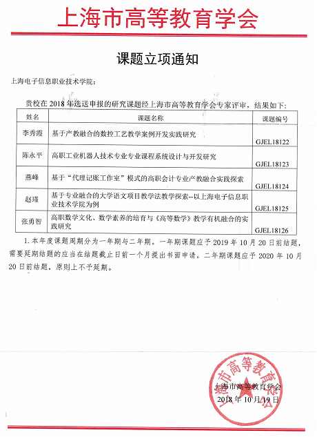 根据上海市高等教育学会《关于2018年度规划课题申报的通知》的要求,2018年7月,科研处在全校范围内组织开展了2018年上海市高等教育学会课题申报工作。经科研处初审、校内专家评审、校学术委员会审定,择优报送...