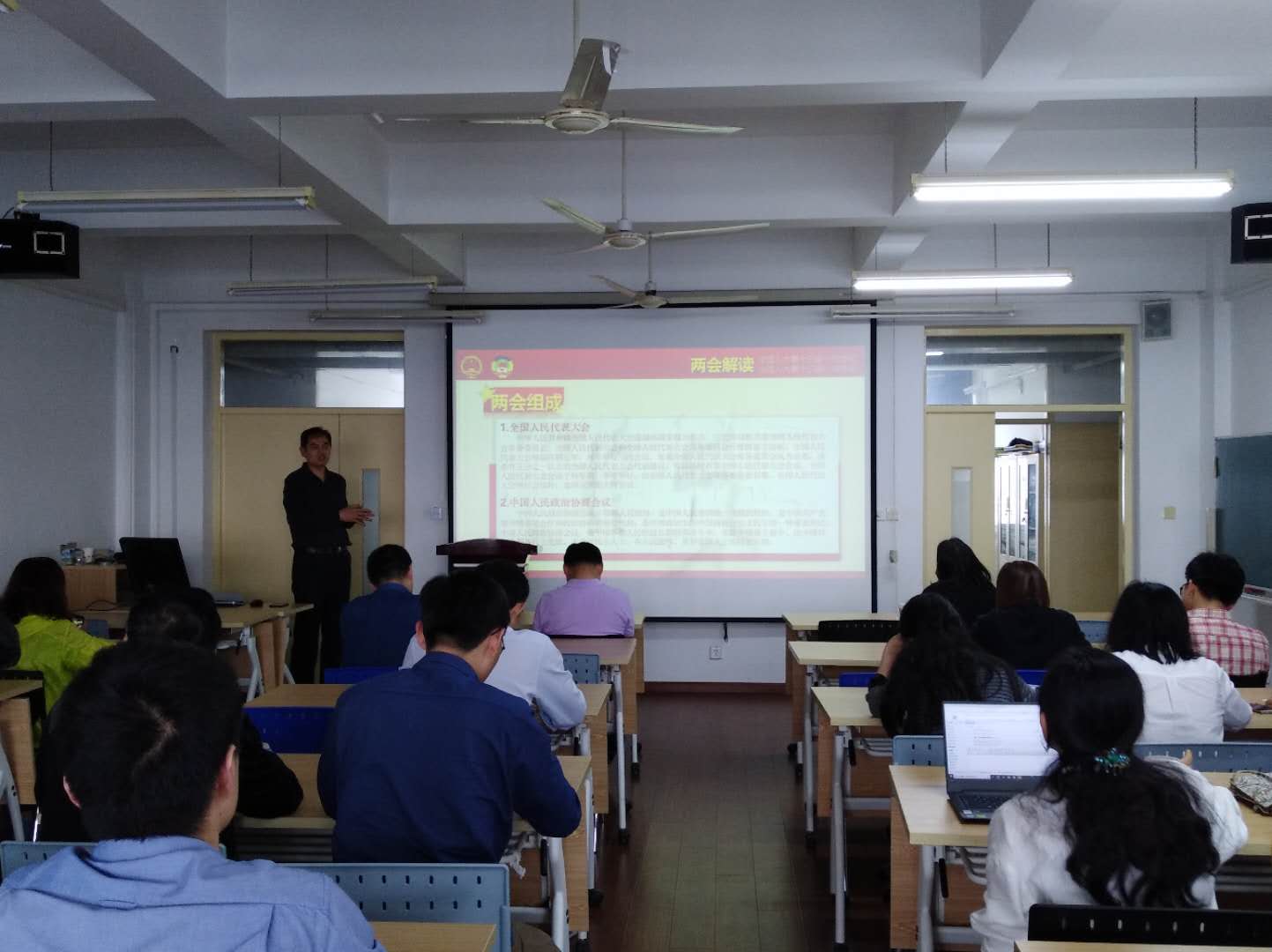 2018年5月25日下午,纽约国际官网机械与能源工程学院邀请马克思主义学院副院长茌良计老师于TCN509开展两会精神解读的专题讲座,机械学院全体教职工参加讲座。 讲座中,茌老师紧紧围绕全国两会重要精神,从两...