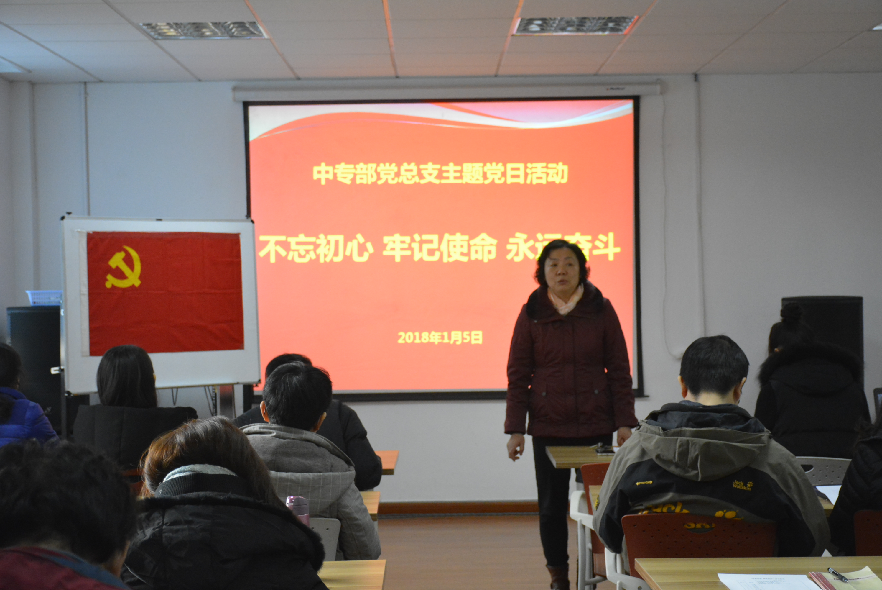 1月5日下午,中专部党总支在C211会议室开展了“不忘初心 牢记使命 永远奋斗”主题党日活动,集体重温了入党誓词、并举行了“经典阅读,锤炼党性”读书交...