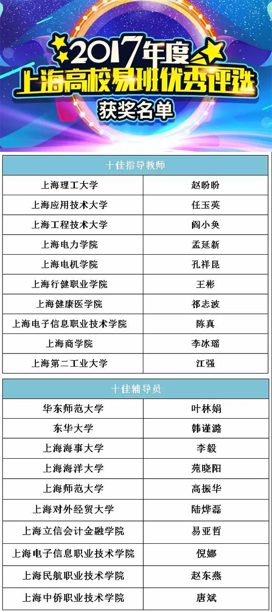 在全党全国深入学习党的十九大精神之际,日前由上海易班发展中心主办的2017年度上海高校易班优秀评选工作结果出炉。纽约国际官网易班学生工作站指导老师陈真荣获“十佳指导老师”称号...