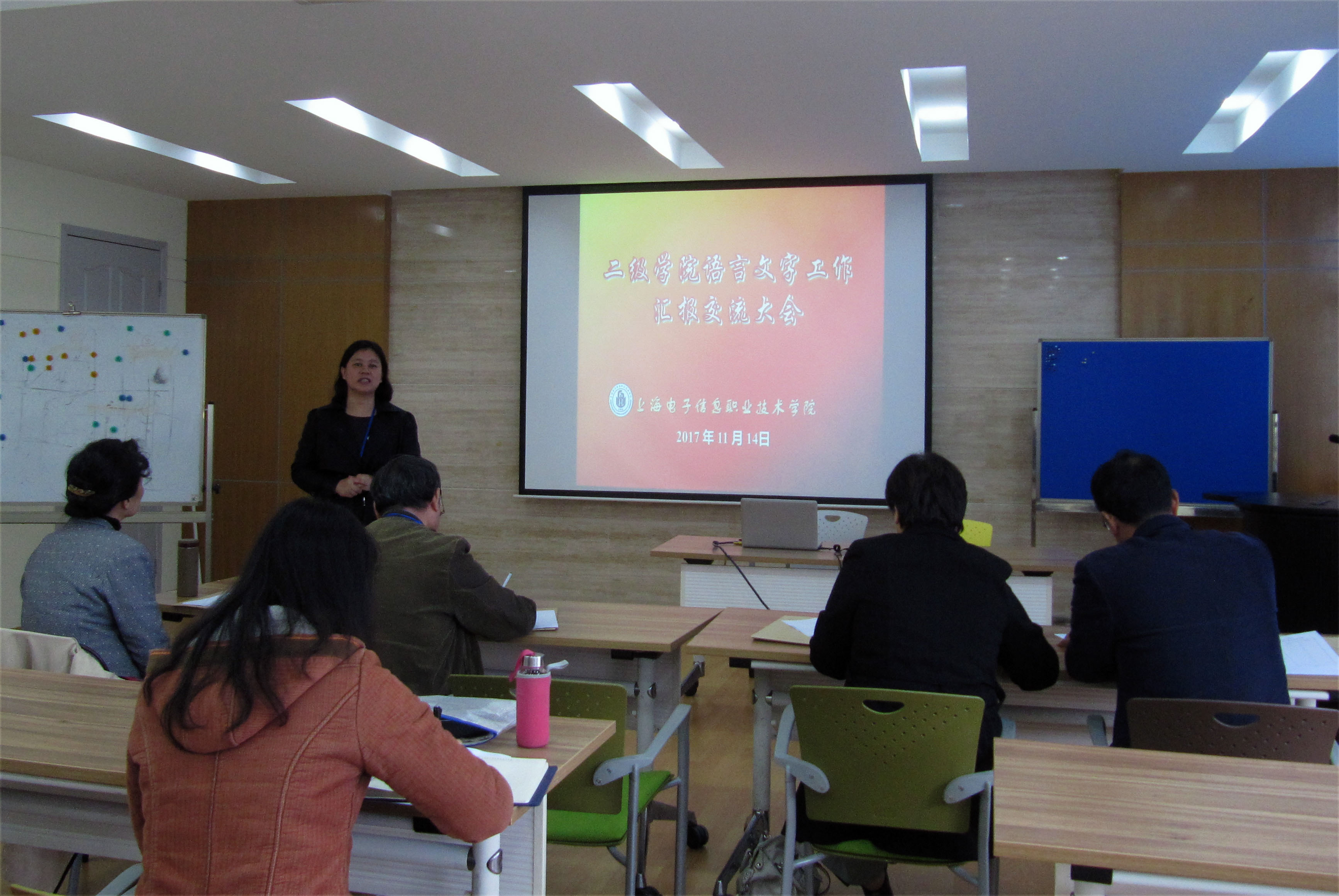 2017年11月14日,纽约国际官网二级学院语言文字工作汇报交流会在奉贤校区A207召开。副校长窦争妍主持会议,教学督导委员会委员、教务处副处长戴玉珍出席会议。 &n...