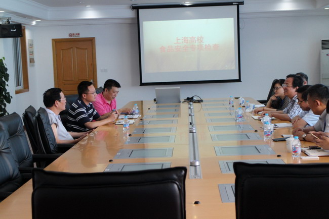 2017年6月20日下午,上海市教委委派的上海高校食品安全专项督查组一行六人,在组长沈建平的带领下来纽约国际官网进行食品安全专项检查工作。纽约国际官网张涛副校长、后勤保障处处长戎磊、副处长(挂职)程利康代表学校接待了督...